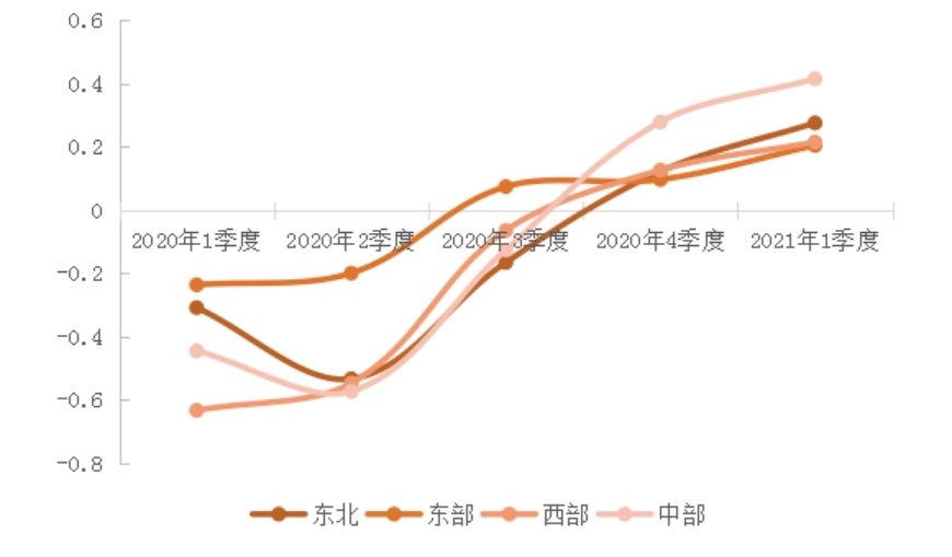 圖 4 中小企業(yè)線上采購成交金額同比增速的區(qū)域比較