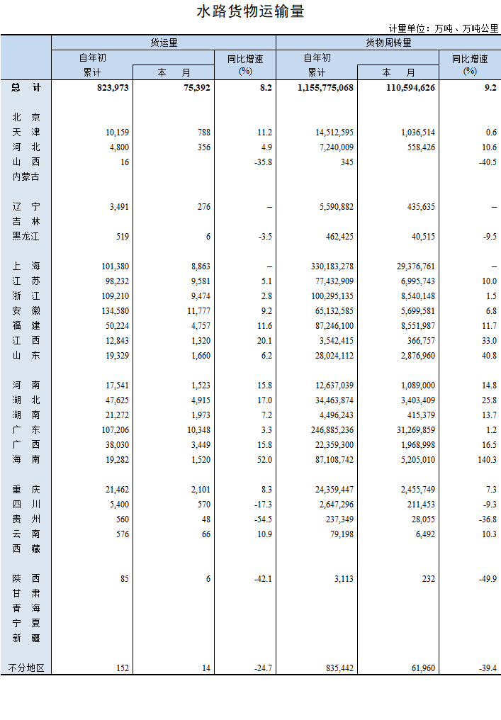 2021年12月水路貨物運輸量