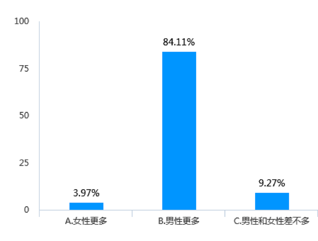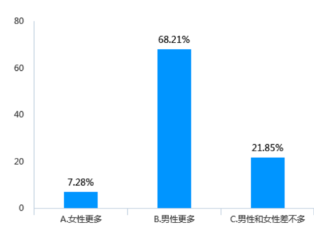 本次調(diào)查表明,“男多女少”確實(shí)符合物流業(yè)現(xiàn)狀和實(shí)際情況,但男女比例的差距卻小于很多人的想象。