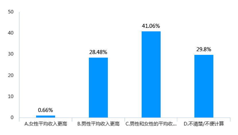 從薪資水平來(lái)看,男性和女性的平均收入水平一樣的企業(yè)占41.06%,女性平均收入更高的企業(yè)占0.66%,男性平均收入更高的企業(yè)占28.48%(見(jiàn)圖12)。