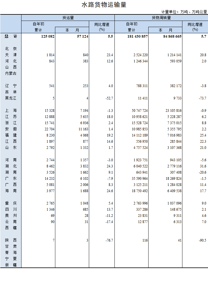2022年2月水路貨物運輸量