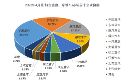 在行業“凜冬”中,4月排名前五的重卡企業中,中國重汽是唯一實現銷量破萬的企業,以1.25萬輛的銷量,拿下2022年以來的第二個月度銷冠,前4月,達成“2冠2亞”、“一季度冠軍”的成績,累計銷售6.76萬輛,實現銷量登頂,市占率上升至28.54%,進一步穩固了行業“老大”的地位,在行業洗牌中實現騰飛。