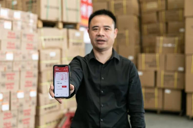 物流從業(yè)人員展示數(shù)字人民幣錢包