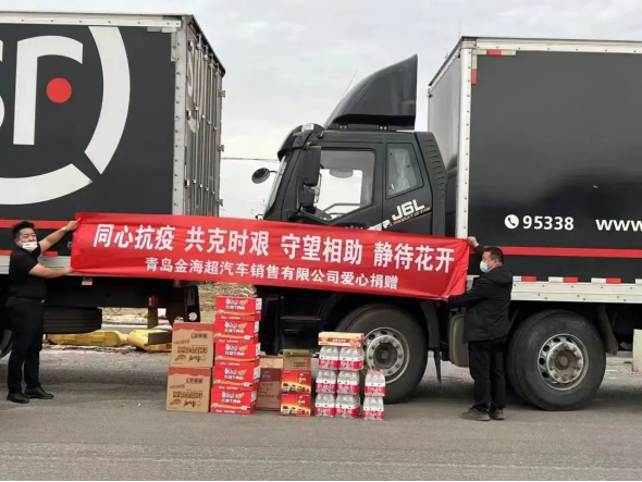 4月2日,解放400客服接到了一位卡友的來電:運送物資的車隊滯留在青島萊西的高速口2天,車內已經沒有吃的了,希望能得到幫助。4月以來,出于疫情防控的需要,外地車輛進出萊西區域各高速出入口需要接受嚴格的檢查。運送防疫物資的順豐車隊,因為排隊等待下高速,已經在高速口滯留兩天時間了,車內也都斷水斷糧。解放客服了解到車隊的救援請求后,馬上聯系到山東商代處幫助處理。山東商代處立刻指派車隊所在區域的經銷商青島金海超前往高速口救援,青島金海超馬不停蹄地趕往車隊的臨時停靠地,將水和食物搭配好,一輛車接著一輛車交到車隊卡友手中。車隊卡友收到準備齊全的生活物資后,紛紛表示感謝,同時也感動于解放經銷商能在車隊已經離開滯留地的情況下,還能繼續趕來為車隊送上物資。有一位車隊卡友更是感慨道:“沒想到一個電話解放公司能這么重視,而且能慰問整個車隊,為解放大愛精神感動!”
