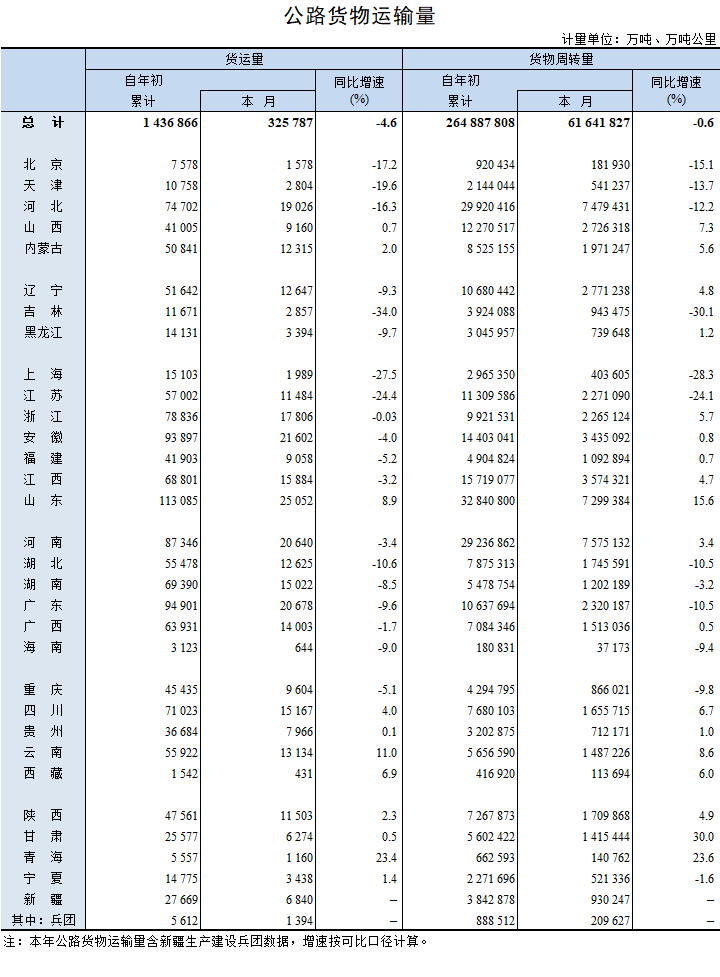 2022年5月公路貨物運輸量