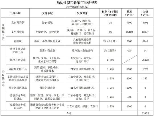 目前的結(jié)構(gòu)性貨幣政策工具有10項(xiàng),分別為:長(zhǎng)期性工具,支農(nóng)再貸款、支小再貸款、再貼現(xiàn);階段性工具,普惠小微貸款支持工具、抵押補(bǔ)充貸款、碳減排支持工具、支持煤炭清潔高效利用專項(xiàng)再貸款、科技創(chuàng)新再貸款、普惠養(yǎng)老專項(xiàng)再貸款、交通物流專項(xiàng)再貸款。