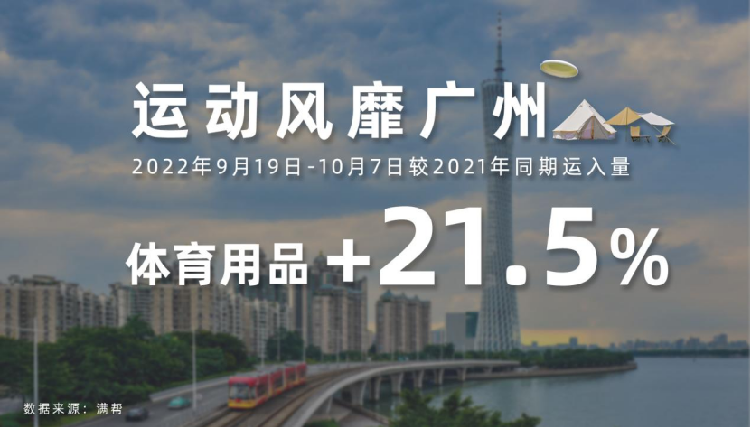 十一前,多地發(fā)布提示,提倡就地過(guò)節(jié),市民心中的“詩(shī)與遠(yuǎn)方”縮小半徑,創(chuàng)造出了“城市微度假”的新玩法。而露營(yíng)、騎行、飛盤(pán)、腰旗橄欖球、槳板等新的運(yùn)動(dòng)方式也成了度假必備項(xiàng)目。這些運(yùn)動(dòng)中需要用到帳篷、自行車、槳板、魚(yú)竿等用品。滿幫平臺(tái)數(shù)據(jù)顯示,十一期間廣州、北京、深圳的體育用品運(yùn)入量較去年同期相比分別增長(zhǎng)了21.5%、19.5%、3%。