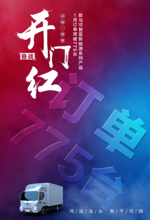 奮戰一季度,勇奪開門紅。 2023,隨著國內疫情管控的放開、經濟的恢復性增長、貨運市場逐步復蘇,商用車新能源化浪潮滾滾而至,高端輕卡領導者歐馬可勇立潮頭,拓啟新篇。在砥礪向前,大步奮進的新征程中,全員一致,攜手奮進,共贏“開門紅”——開年即獲歐馬可智藍新能源輕卡775臺訂單。