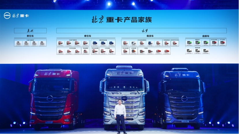 北京重卡發布復興與追夢兩大平臺,首發的產品家族包含15個細分市場百余種應用場景,覆蓋80%以上的重卡市場,產品全系標配自動擋,為用戶提供更輕松、更智能、更節油的用車體驗。