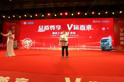 會上一汽解放產品線張繼偉經理、銷售公司王念東經理,徐州朗馳李峰總經理以及客戶代表共同登臺,啟動一汽解放J6V領航版15升牽引車新品上市。相信J6V領航版15升牽引車能夠帶領更多用戶行駛遼闊天地,譜寫榮耀華章。