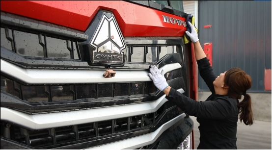 提了新車的李潤蘭一大早就開始了忙碌的一天,由于打心眼里愛卡車,又對中國重汽充滿好感,能夠開上豪沃新車讓她不免有些“喜出望外”,然而她手頭的工作卻片刻沒有懈怠。裝貨、解決送貨問題,她游刃有余地應對運輸中的形形色色,麻利地在幾米高的大貨車上爬上爬下,嫻熟地檢查車輛狀態,一氣呵成完成蓋篷布、綁繩子等工作……可以說,男司機能做的事情從來難不倒這位卡姐。