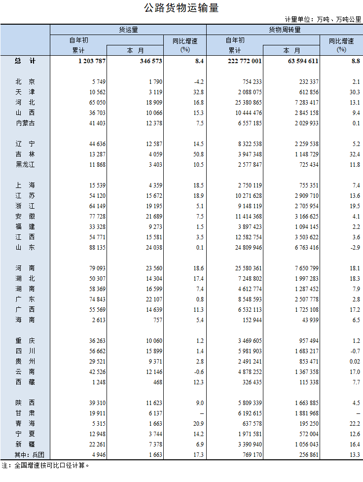2023年4月公路貨物運輸量