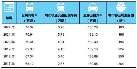 表5? 2017-2022年年末全國城市客運裝備擁有量
