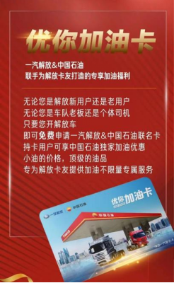 解放ETC享受全國95折優惠,并提供月結賬期服務,緩解客戶資金壓力,讓客戶省時、省錢、省心;解放優你加油卡免費辦理,在全國多地可享加油直降優惠,小油價格、大油品質,助力卡友節省運營成本;車隊管理系統為車隊提供數字化、智能化解決方案,全面提升運營效率,優化成本支出,降低安全風險,管車用車得心應手;安全管家車險提供24小時主動安全服務,用心守護每一段旅程,讓行車更安全,投保更輕松,家人更放心。