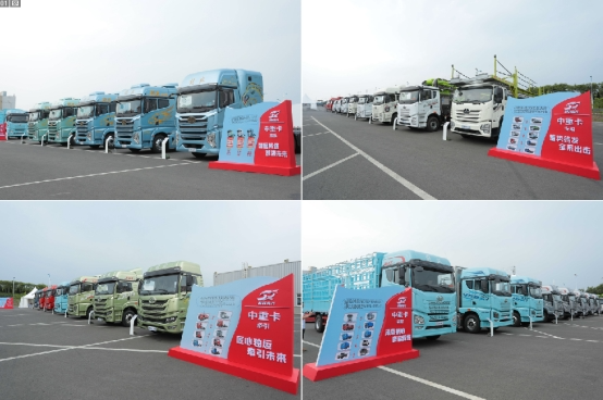 慶典結束,與會嘉賓共同品鑒了涵蓋中重卡、輕卡、新能源等13個品類的127臺展車。