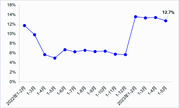 5月,完成交通固定資產(chǎn)投資3373億元,同比增長10.7%,其中,完成公路投資2723億元,同比增長9.5%;完成水運投資174億元,同比增長31.9%。