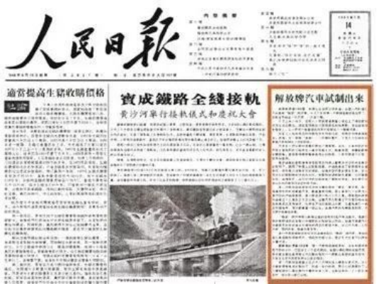 1956年7月14日,《人民日報(bào)》頭版刊發(fā)《解放牌汽車試制出來》