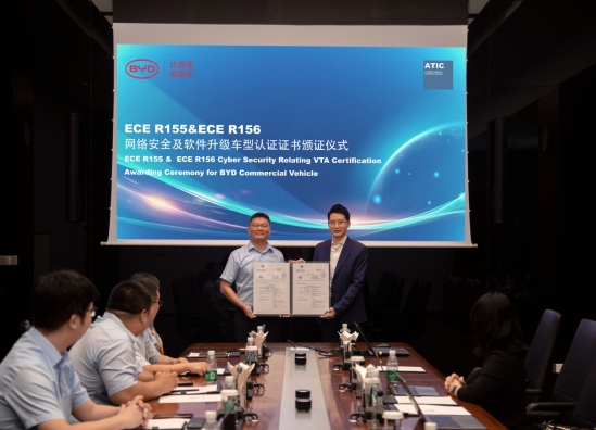 本次歐洲市場代表車型——比亞迪K9UD順利獲得VTA證書,由致力于全球汽車準入研究與整車認證服務(wù)的ATIC泰測技術(shù)合作完成。該證書獲頒不僅表明該產(chǎn)品已符合歐盟最新網(wǎng)絡(luò)安全及軟件更新的法規(guī)要求,為今后深耕歐洲市場、進一步開拓全球市場奠定良好基礎(chǔ);也體現(xiàn)出比亞迪推動全球汽車智能化綠色化發(fā)展的堅定決心,和為廣大客戶提供車輛網(wǎng)絡(luò)安全保障的強大實力。