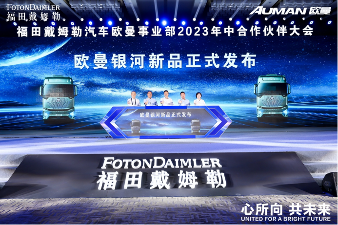 2023年7月26日,以“心所向 共未來”為主題的歐曼新品上市發布會在北京懷柔舉行。會上,歐曼正式發布包括全新歐曼銀河、歐曼EST星輝版、歐曼智藍底部換電重卡等一系列新品;同時,福田康明斯為歐曼專屬打造的全新一代福康A 系列發動機同步發布,涵蓋8.5L-15L全面滿足四階段油耗標準。此外,歐曼重卡匹配的超級動力鏈4.0正式亮相,再次以迭代的革新技術,實現歐曼專屬超級動力鏈擁有超級戰力,憑借更成熟、更領先的技術持續助力客戶向效率要效益,推動物流行業降本增效。