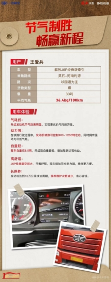 卡車司機王愛兵,生活中是一位精打細算的人,他在選購運輸車輛時格外注重性價比和實用性。他介紹說,“我在山西與河南這條線路上從事煤炭運輸,最看重的就是車輛的自重,解放J6P經典版LNG牽引車采用新材料、新工藝、新結構多項降重措施,整車自重僅8.5噸,是同級別產品中最輕的。這就意味著,同樣條件下,可以多拉多賺。”