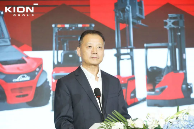 在慶典儀式上,凱傲集團董事兼凱傲亞太及美洲區總裁郭進鵬首先發表了歡迎致辭,向來賓介紹了林德物料搬運在華三十年的發展,他表示:今天的林德物料搬運在中國擁有60多個分公司,400多個銷售服務網點,覆蓋260多個城市,服務了4萬多家企業客戶,在外資叉車品牌中的份額遙遙領先。2022年,林德物料搬運在全部外資品牌叉車中的份額占比接近四分之三。