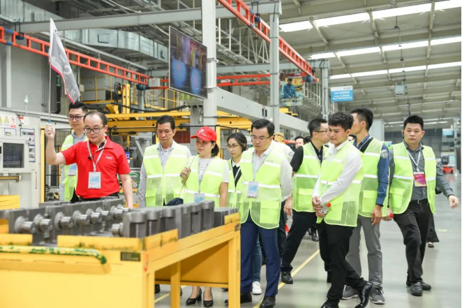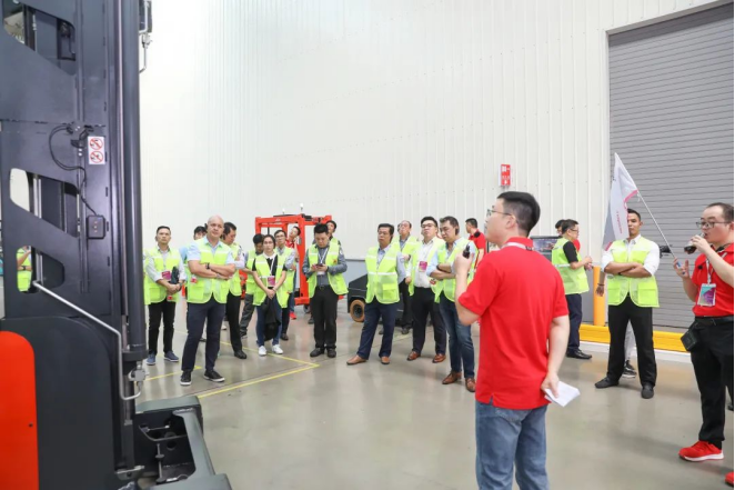 在工廠開放環節,林德物料搬運陪同客戶零距離參觀了焊接、噴粉、裝配等智造工藝產線,為客戶講解車間內一系列先進生產設備和前沿制造技術的使用。