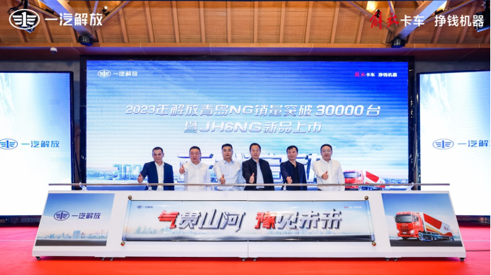 2023年10月14日,以氣貫山河 豫見未來”為主題的2023年解放青島NG銷量突破30000臺暨JH6NG新品上市在河南洛陽盛大召開,一汽解放青汽燃?xì)廛嚕槕?yīng)時勢,把握區(qū)域性用戶需求,以卓越品質(zhì)引領(lǐng)行業(yè)創(chuàng)新發(fā)展,一汽解放青島中重型車銷售公司陳海波主任、河南地區(qū)部總經(jīng)理李永濤與青汽經(jīng)銷商洛陽天裕、用戶代表及媒體嘉賓以“氣”為媒,共襄盛會。