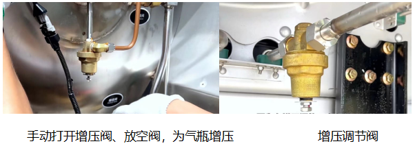 但當(dāng)氣瓶壓力低、車輛動力變差時,我們就需要同時打開增壓閥、放空閥給氣瓶進(jìn)行增壓了。無需擔(dān)心持續(xù)的增壓會造成氣瓶內(nèi)部壓力過高,因為在增壓閥的下方有增壓調(diào)節(jié)閥,一旦氣瓶的壓力恢復(fù)正常時,增壓調(diào)節(jié)閥就會停止工作,整個增壓過程就會停止了。