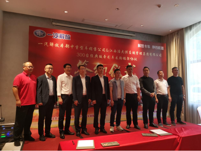 2023年10月25日,一汽解放與江西浩大供應鏈管理集團有限公司“300臺J6P經典版牽引車采購合作框架簽約儀式”在江西萍鄉隆重舉行。江西浩大供應鏈管理集團有限公司董事長陳建勇、江西浩大供應鏈管理集團有限公司總經理廖淀軍、江西浩大供應鏈管理集團有限公司黨支部書記劉本金、江西浩大供應鏈管理集團有限公司分廠廠長歐陽方亮、一汽解放本部中重型車銷售公司高級主任管理師楊天明、高安市海鑫汽車貿易有限公司董事長何海軍、一汽解放本部中重型車銷售公司贛湘鄂地區部部長徐紹熙、萍鄉三鑫達汽車貿易有限公司董事長徐定河、一汽解放本部中重型車銷售公司贛湘鄂地區部營銷主管姚金池等出席本次活動。