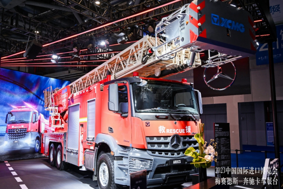 Arocs系列是梅賽德斯-奔馳卡車專為工程作業及越野而打造的重卡系列,以極高的可靠性、堅固耐用及易改裝性而著稱,受到國內外消防改裝廠的廣泛認可。此次帶來的集高空救援和滅火功能于一身的Arocs 3346 6×4云梯消防車,是與國內消防改裝領軍企業徐工消防合作開發。雙方合作長達28年,已創造多項紀錄,不斷刷新行業“高度”。