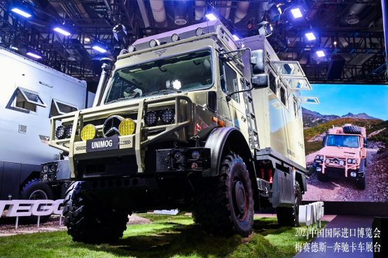 本次參展的Unimog U 4023越野旅居車為新產品首次在華亮相,和四川艾可沛合作開發。頗具傳奇色彩的Unimog車型誕生于1946年,在設計上極為與眾不同,具有出類拔萃的通過性及涉水深度;還可應用于多種行業,如越野旅居、災害救援、機場除雪等。