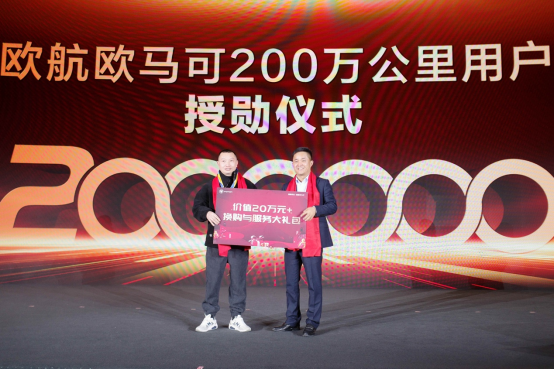 【歐航歐馬可事業(yè)部黨委書記、總裁唐宏超向200萬公里用戶柯勇授勛并發(fā)放大禮包】