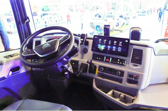 豪沃TS7-H駕駛室內部高達2.2米,進一步拓寬了駕駛空間;主副駕均采用氣囊座椅并配有通風加熱功能,舒適感更強;配備12.3寸液晶顯示屏,并裝有四方位影像、貨車導航、語音喚醒等功能,用車更安全也更方便;NVH全方位優化升級,駕駛室氣密性提升、內飾吸聲系數提升、整車隔音效果提升,最終能達到48dB的室內噪音,處于行業領先水平。