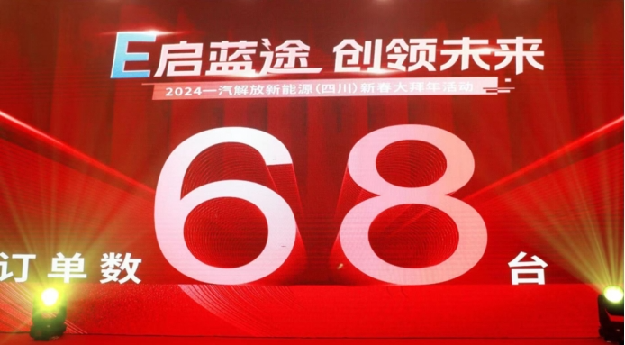 成都“新春大拜年”現場共斬獲68輛新能源訂單,為一汽解放奪取新年開門紅增添碩果。