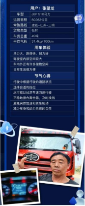 對卡友而言,送貨的時(shí)效性尤為關(guān)鍵,所以,大馬力、加速快的卡車具有一定運(yùn)輸優(yōu)勢。張師傅經(jīng)過再三考量后,選擇了一輛解放J6P LNG牽引車。行駛5萬多公里后他的用車體驗(yàn)是:馬力大、跑得快、耐力好!這些都是他準(zhǔn)時(shí)送貨的堅(jiān)實(shí)保障。作為一款經(jīng)濟(jì)適用車型,J6P天然氣車是解放旗下的主打產(chǎn)品。其駕駛室內(nèi)部空間大、儲(chǔ)物空間多,日常生活很方便。張師傅還總結(jié)了自己的省氣心得,他建議卡友們在行駛過程中盡量讓車輛以勻速行駛,避免突然加速和緊急制動(dòng)、減少車身和動(dòng)力系統(tǒng)的負(fù)荷。