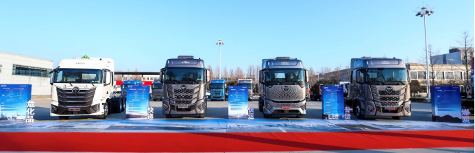 前瞻客戶需求趨勢,在牽引車方面歐曼銀河、歐曼EST星輝版、歐曼GTL星翼版三款車型實現(xiàn)LNG+CNG的雙動力加持,全面滿足長途、中長途配貨以及危險品、煤炭運輸場景需求。在載貨車方面,歐曼EST星輝版LNG產(chǎn)品,超長大容積貨箱匹配滿足快遞運輸?shù)瓤蛻舾嘌b載,更多拉的需求,且2000-5000km的長續(xù)航,助力客戶贏領(lǐng)未來;歐曼行星中卡則通過技術(shù)升級實現(xiàn)整車自重更輕,駕駛室空間更舒適,打造低氣耗、高舒適、低自重的卓越性能。在自卸車方面,歐曼昆侖LNG產(chǎn)品通過底盤性能提升,NVH性能提升,打造最威猛舒適可靠的工程車。