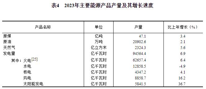 初步核算,全年一次能源生產總量48.3億噸標準煤,比上年增長4.2%。