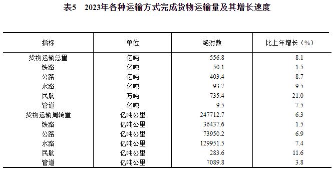 [28]貨物運輸總量及周轉量包括鐵路、公路、水路、民航和管道五種運輸方式完成量,2023年增速按可比口徑計算。