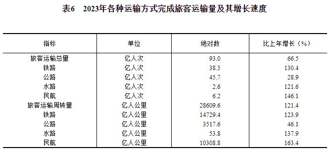 全年旅客運輸總量93億人次,比上年增長66.5%。旅客運輸周轉量28610億人公里,增長121.4%。