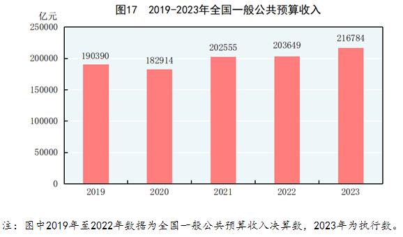全年全國一般公共預算收入216784億元,比上年增長6.4%;其中稅收收入181129億元,增長8.7%。全國一般公共預算支出274574億元,比上年增長5.4%。全年新增減稅降費及退稅緩費超2.2萬億元。