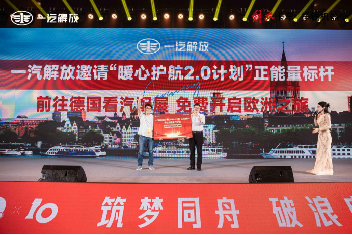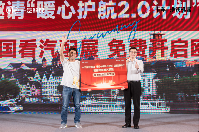 顧燕山,是一位來自石家莊的解放車主,他也是“卡友地帶”平臺2023年解放暖心護航計劃2.0“正能量標桿”中的第一名。為了表彰其善行義舉,弘揚了卡車司機的大愛精神,在“第十屆5.2卡友節(jié)”的卡車司機歡慶晚宴上,一汽解放營銷總部黨委書記、總經(jīng)理紀勝師為其頒獎。邀請他陪伴解放星域概念卡車開啟“歐洲之旅”,一同前往德國觀看汽配展覽。
