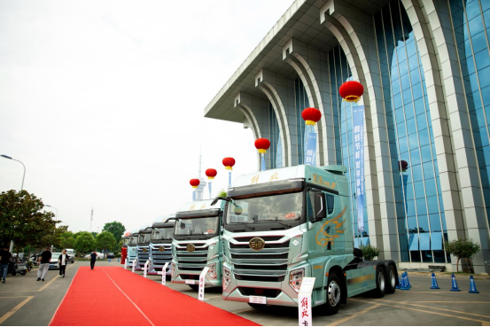 精心匠造,榮耀啟程。在現(xiàn)場來賓的見證下,一汽解放青島整車事業(yè)部總經(jīng)理、黨委書記彭龍,一汽解放動力總成事業(yè)部總經(jīng)理倪牟淳,一汽解放營銷總部副總經(jīng)理、青島中重型車銷售公司總經(jīng)理張立軍,一汽解放青島整車事業(yè)部青島中重型車產(chǎn)品線整車開發(fā)高級主任師工程師張仁國,一汽解放青島中重型車銷售公司河南地區(qū)部總經(jīng)理李永濤,河南裕華豐匯汽車集團(tuán)總經(jīng)理楊克江共同按下啟動裝置,一起迎來了一汽解放鷹途&JH6牽引6SX1-600的驚艷啟航。