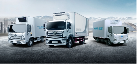 新能源領域,歐航歐馬可重點打造了針對混動路線的智藍HS冷藏輕卡、針對純電路線的智藍EX、ES1系列冷藏輕卡以及氫燃料冷藏車。
