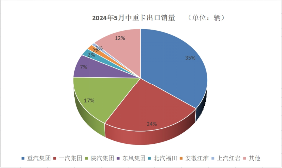 中重卡方面,1-5月中重卡累計出口總量達14.5萬輛;5月海外市場需求達3萬輛。其中,重汽出口10,500輛,蟬聯(lián)海外市場銷冠,市場占有率35%;解放海外銷量增速迅猛,當(dāng)月出口7,080輛,市場份額23.6%;陜汽海外中重卡銷量5,000輛,市場份額16.7%,位居行業(yè)第三;東風(fēng)出口2,200輛,市場份額7.3%,以上4家頭部企業(yè)總量占據(jù)了中重卡出口市場的八成份額。