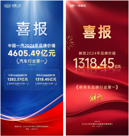 中國一汽兩大自主品牌也在榜單中獲得佳績。“紅旗”2024年品牌價值為1282.37億元,位列乘用車品牌行業(yè)第一;“解放”2024年品牌價值為1318.45億元人民幣,位列榜單第59名,連續(xù)13年品牌價值領跑商用車行業(yè)。中國一汽、“紅旗”“解放”的品牌價值均實現(xiàn)連續(xù)五年躍升。