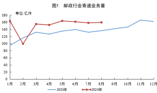 8月份,郵政行業(yè)寄遞業(yè)務(wù)量完成159.4億件,同比增長17.3%。其中,快遞業(yè)務(wù)量完成143.8億件,同比增長19.5%。