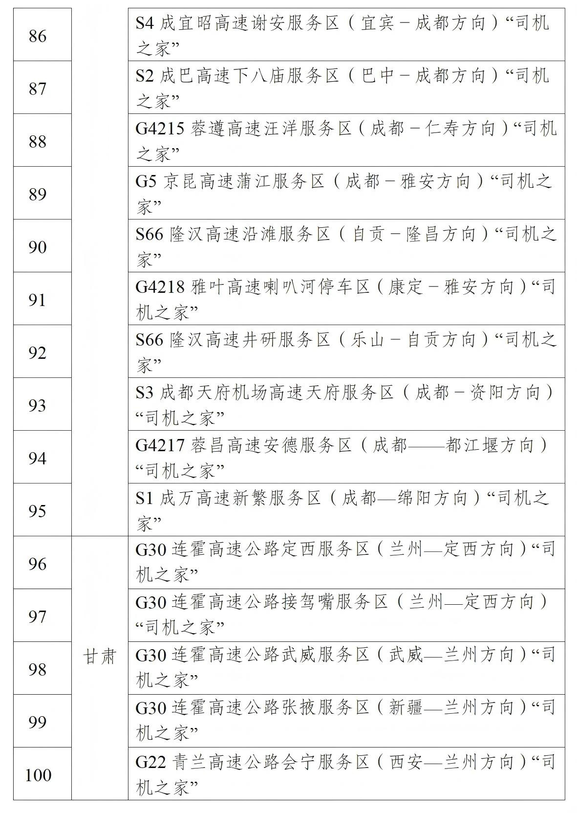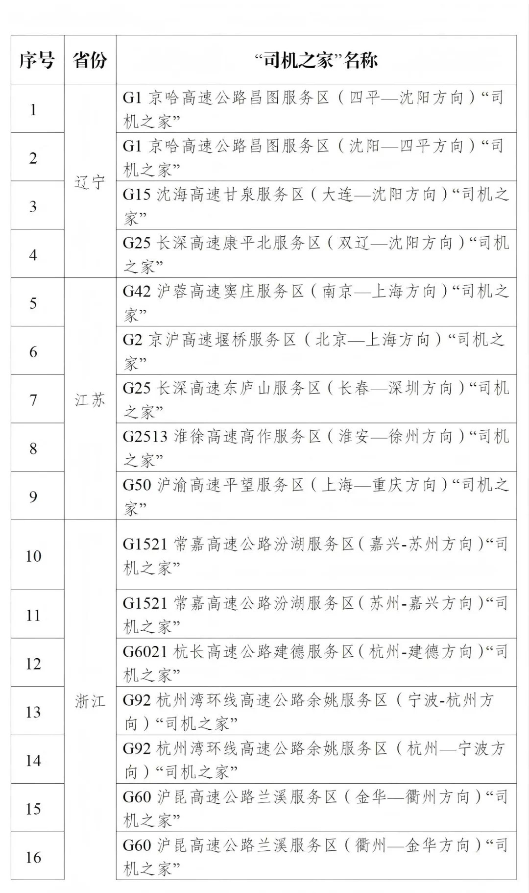 為進(jìn)一步改善貨車(chē)司機(jī)停車(chē)休息環(huán)境,交通運(yùn)輸部、中華全國(guó)總工會(huì)聯(lián)合印發(fā)通知,部署各地開(kāi)展高速公路服務(wù)區(qū)“司機(jī)之家”標(biāo)準(zhǔn)化規(guī)范化提升行動(dòng)。目前,已有100個(gè)高速公路服務(wù)區(qū)“司機(jī)之家”(名單如下)完成改造提升,為貨車(chē)司機(jī)提供停車(chē)休息、熱水供應(yīng)、飯菜加熱、淋浴、洗衣等免費(fèi)基本服務(wù)和可選擇的個(gè)性化服務(wù)。