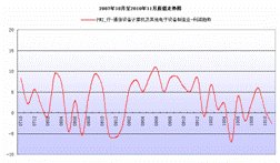 11月份,通信設備計算機及其他電子設備制造業內需與出口比例指數為4.6,比上月上升2.2個百分點,與去年同期相比上升7.1個百分點;利潤趨勢指數為-2.6,比上月下降3.0個百分點,與去年同期相比下降7.8個百分點。