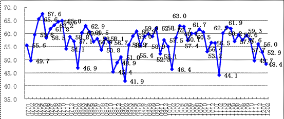 中國物流與采購聯(lián)合會、國家統(tǒng)計(jì)局服務(wù)業(yè)調(diào)查中心發(fā)布的2012年2月份的中國非制造業(yè)商務(wù)活動指數(shù)為48.4%,比上月回落4.5個(gè)百分點(diǎn)。由于非制造業(yè)沒有綜合指數(shù),通常以商務(wù)活動指數(shù)來反映非制造業(yè)經(jīng)濟(jì)的總體變化。