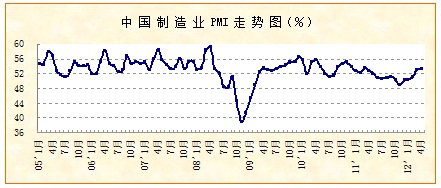 中國物流與采購聯合會和國家統計局服務業調查中心發布的4月份中國制造業采購經理指數(PMI)為53.3%,比上月上升0.2個百分點。該指數經歷連續五個月回升之后,已經高于去年同期水平,顯示宏觀經濟在趨穩的基礎上朝著向好的方向發展。